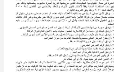 يرغب الامين العام لديوان الزكاه في دعوة عدد من الشركات او أسماء اعمال المتخصصة وذات الخبره في مجال تكنولوجيا المعلومات لتقديم عروضها لتوريد أجهزه حاسوب وملحقاتها وذلك عبر اجراءات المناقصة العامة وفقا لاحكام قانون الشراء والتعاقد والتخلص من الفائض لسنه 2010 ولا ئحته لسنه 2011 وذلك وفق الشروط المدرجة بالاعلان